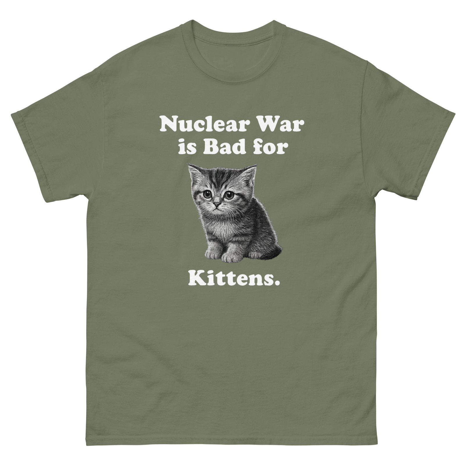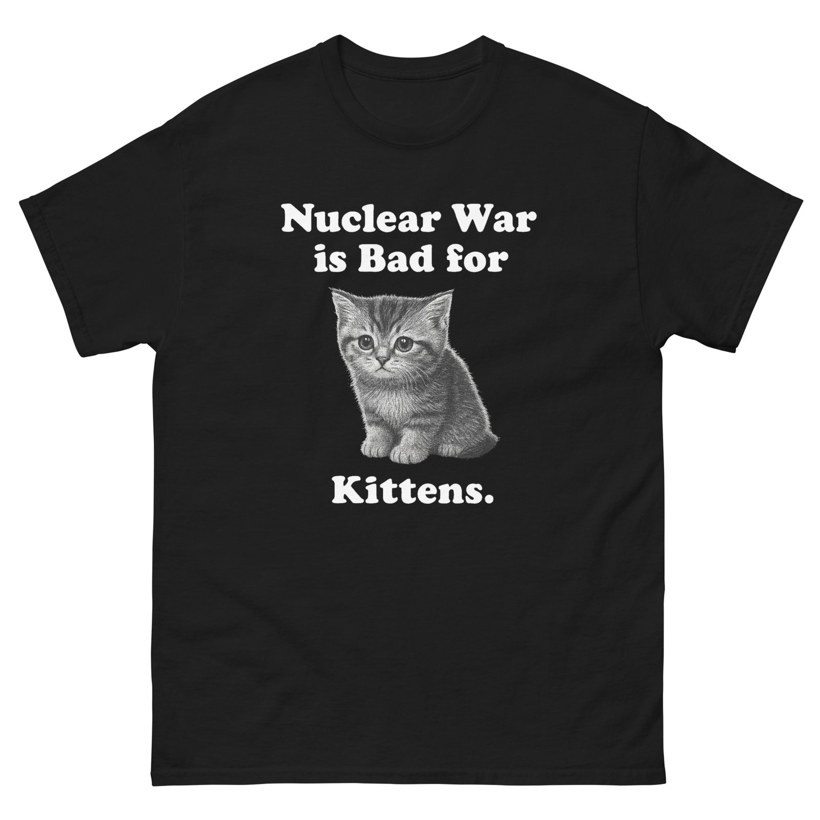Nuclear War Is Bad for Kittens – Funny Cat Meme T-Shirt for Cat Lovers – Unisex classic tee