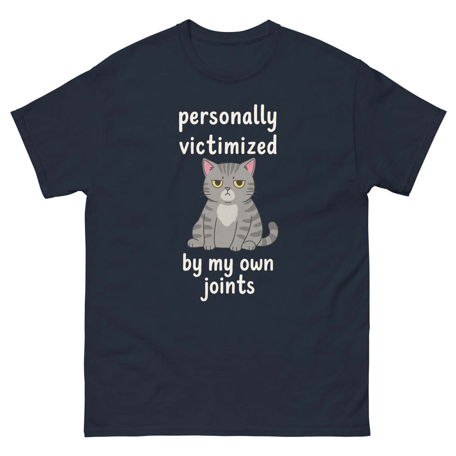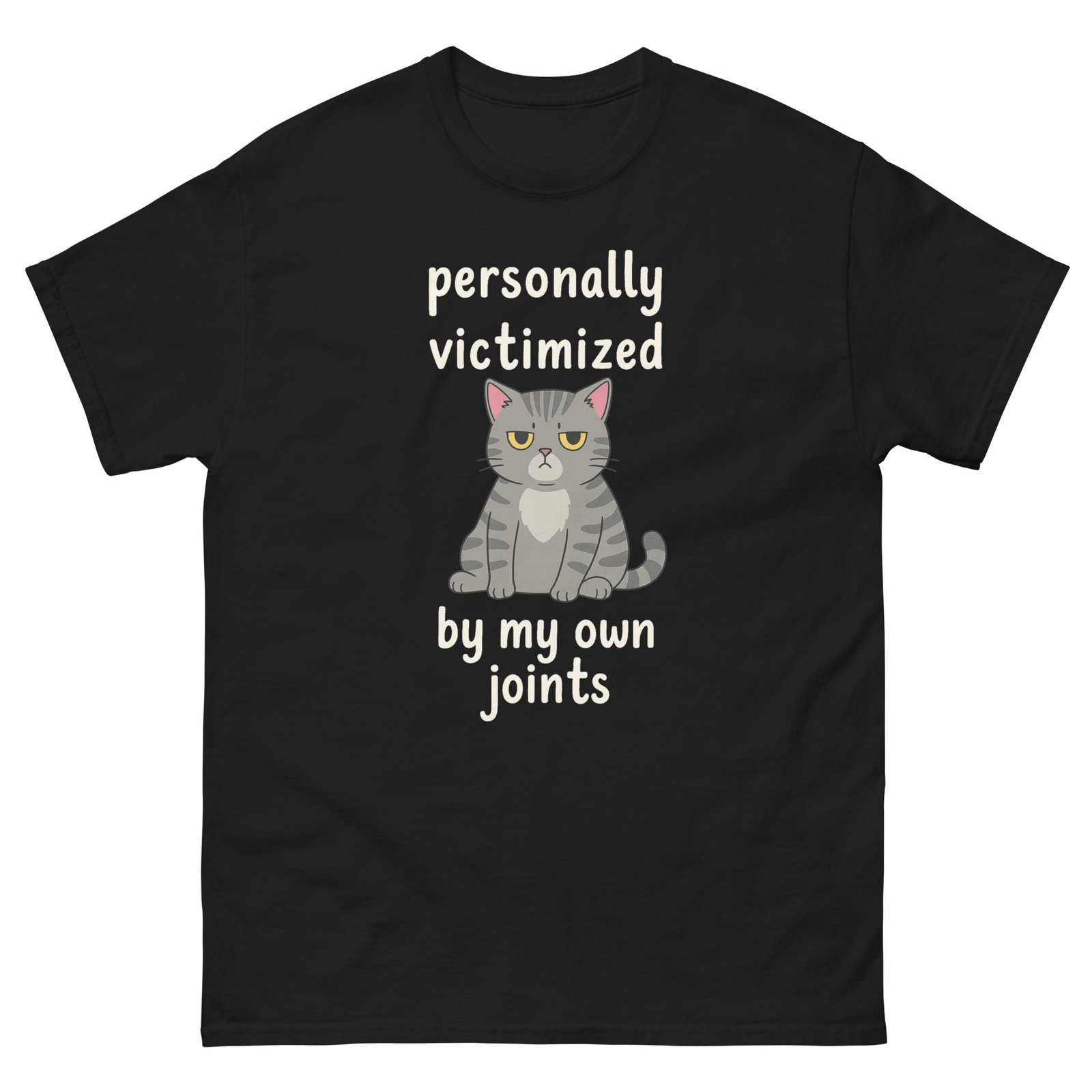 Personally Victimized by My Own Joints Funny Cat – Relatable Cat Humor Tee for Cat Lovers – Unisex classic tee