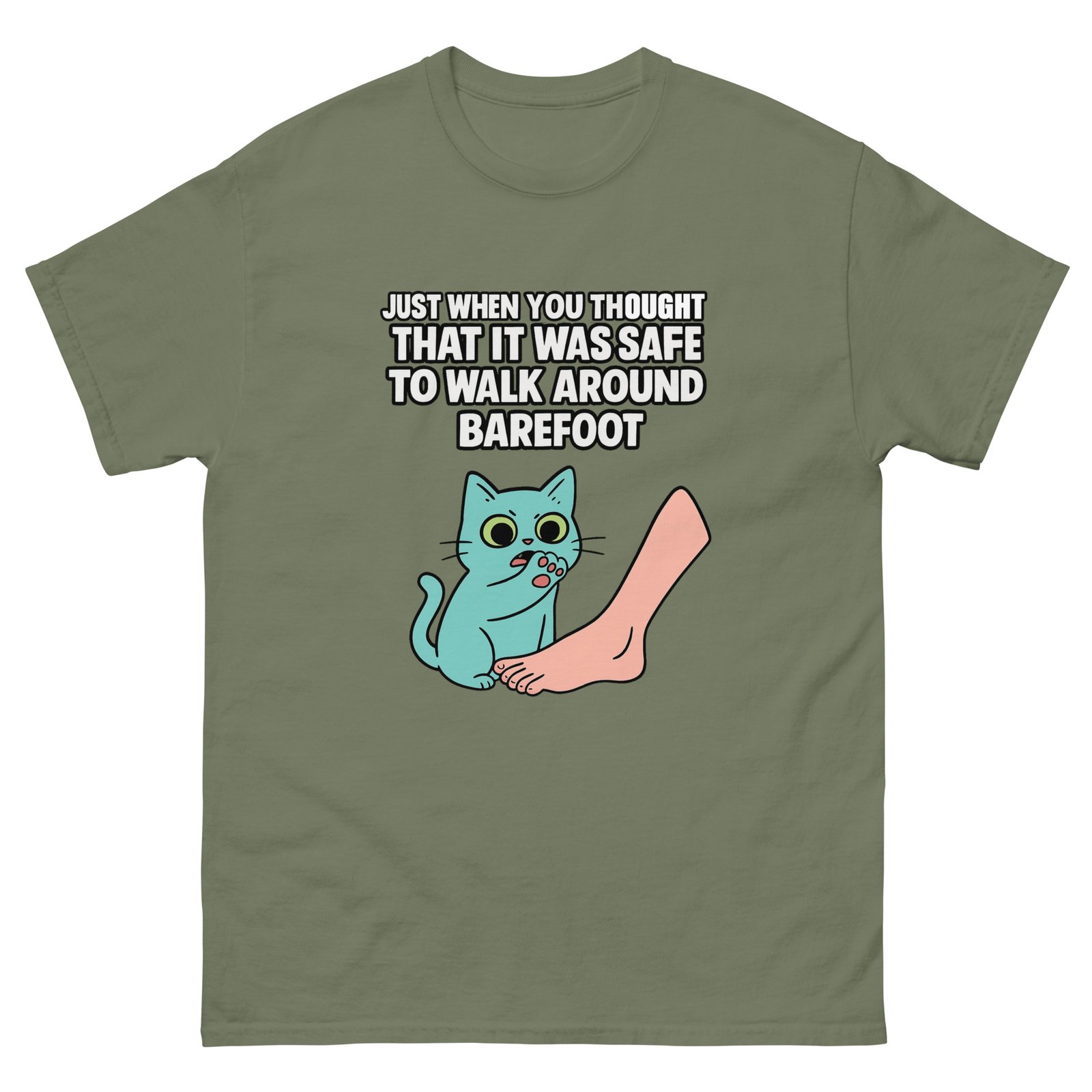 Barefoot Cat Meme – Just When You Thought It Was Safe to Walk Around Funny Cat Graphic Tee – Unisex classic tee