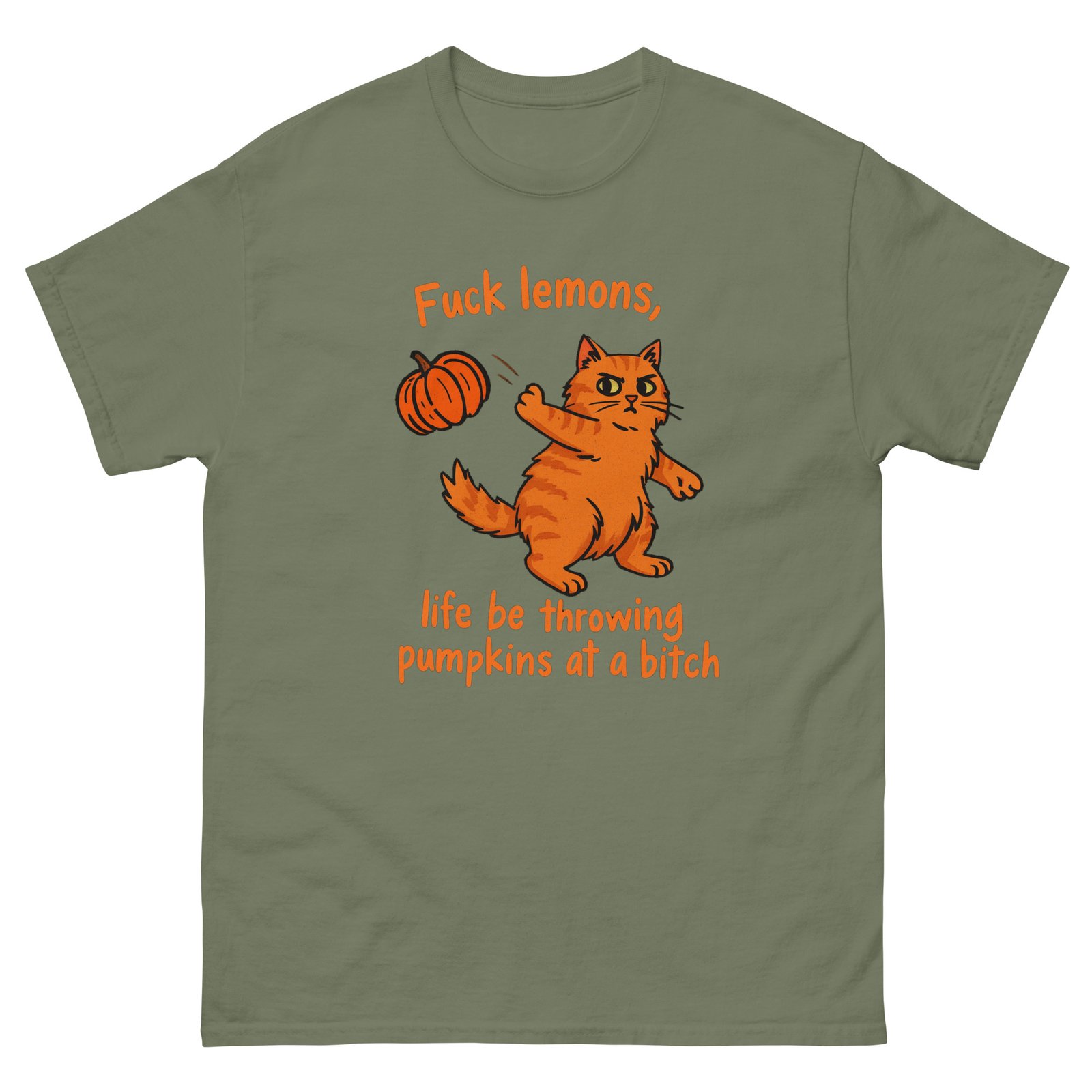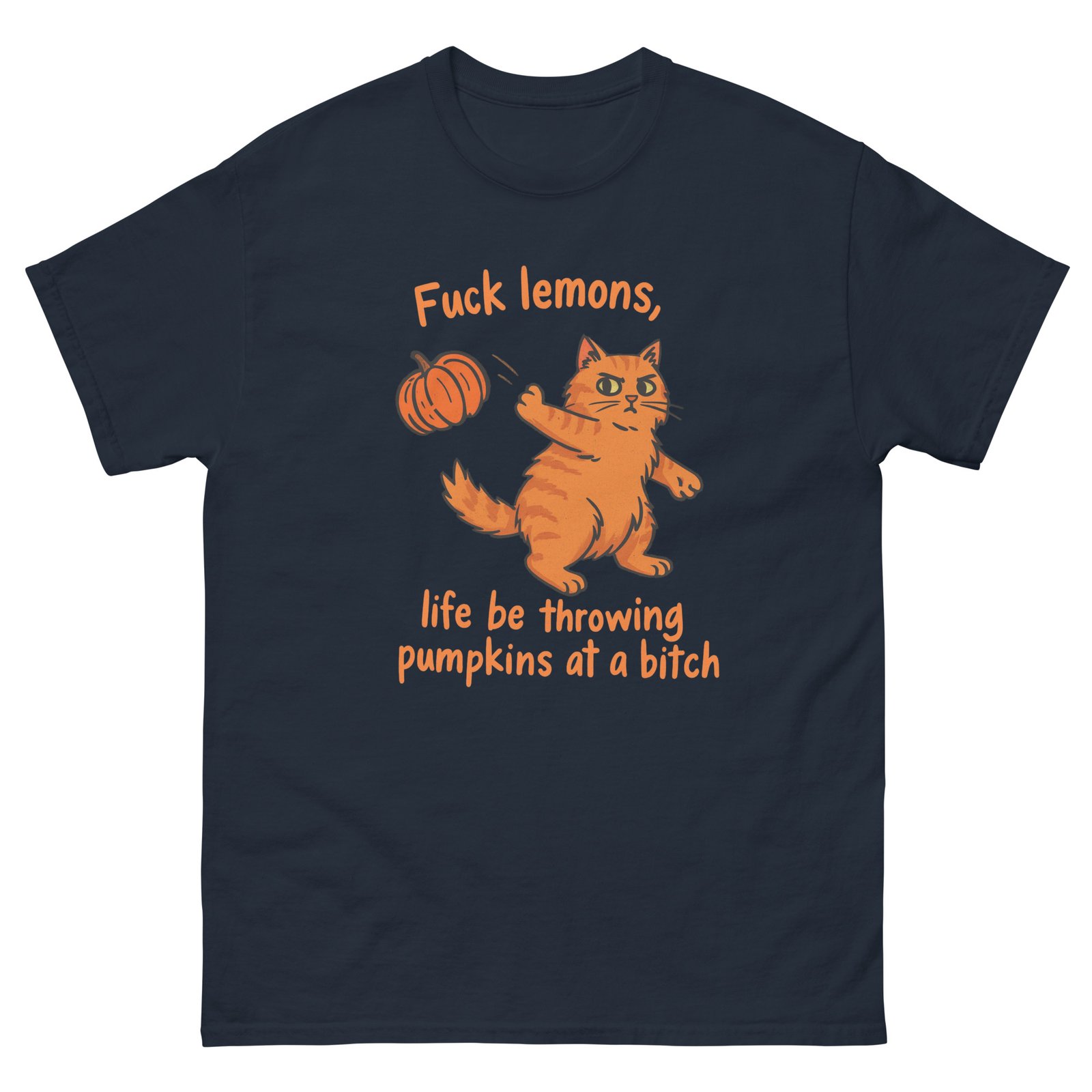 Pumpkin Problems Cat – Forget Lemons, Life Throws Pumpkins Sarcastic Orange Cat Tee, Unisex – Unisex classic tee
