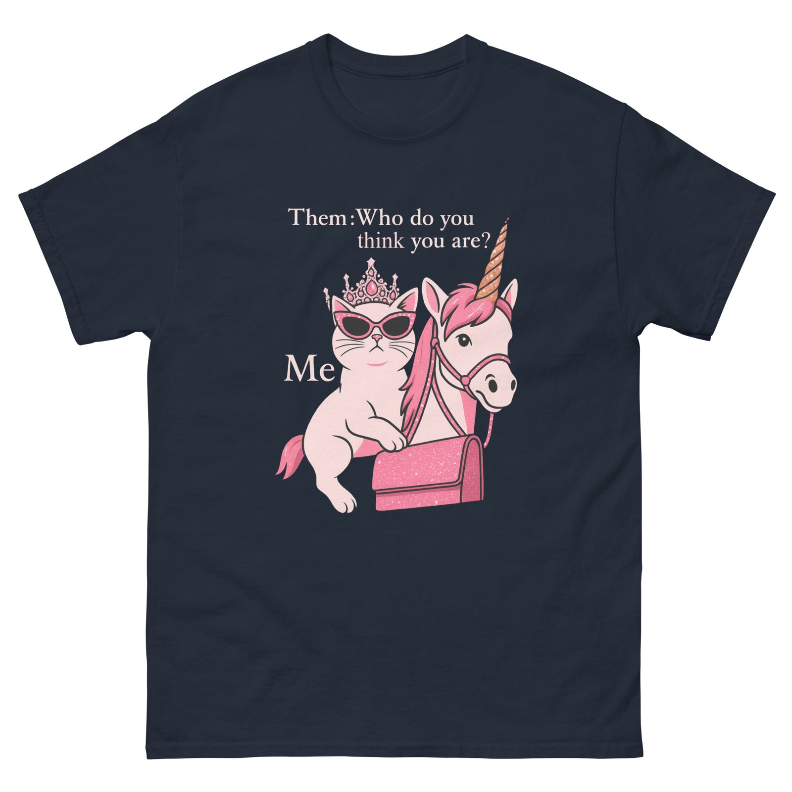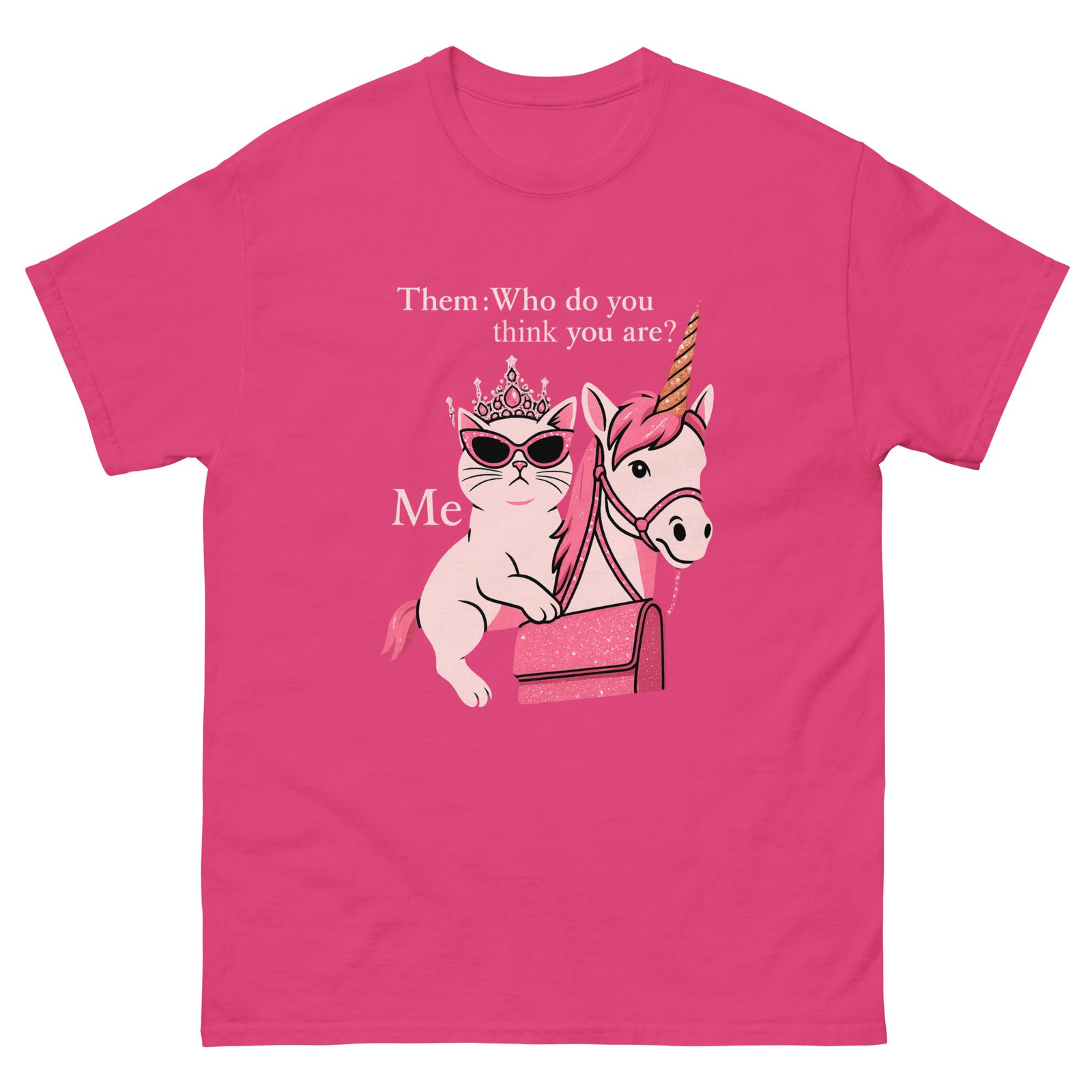 Princess Cat & Unicorn – Who Do You Think You Are Me. Pink Aesthetic Graphic Tee, Kawaii Gift – Unisex classic tee