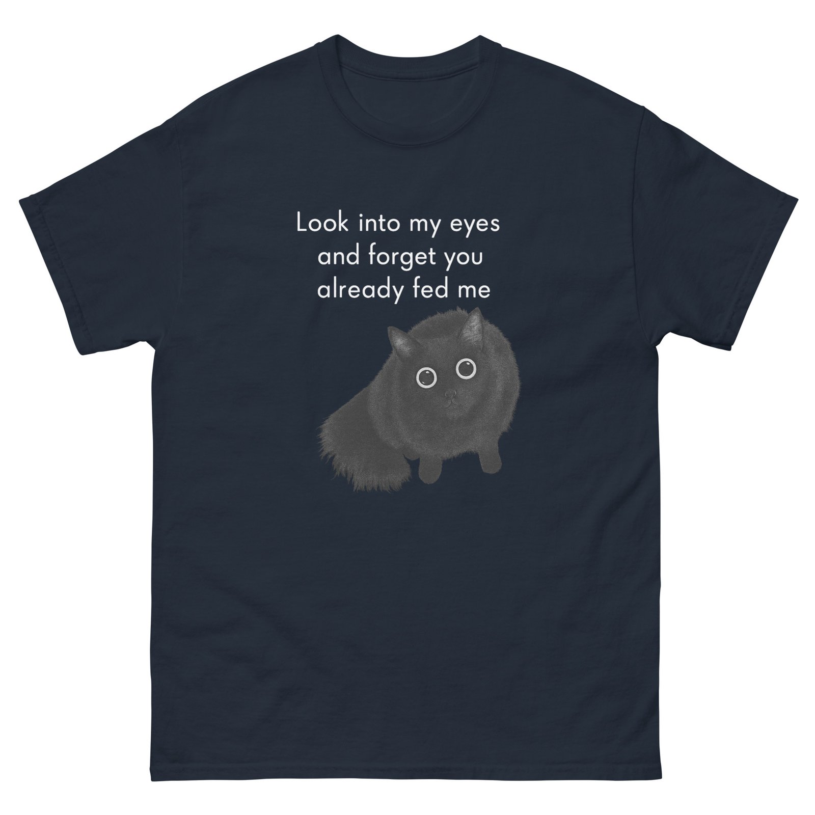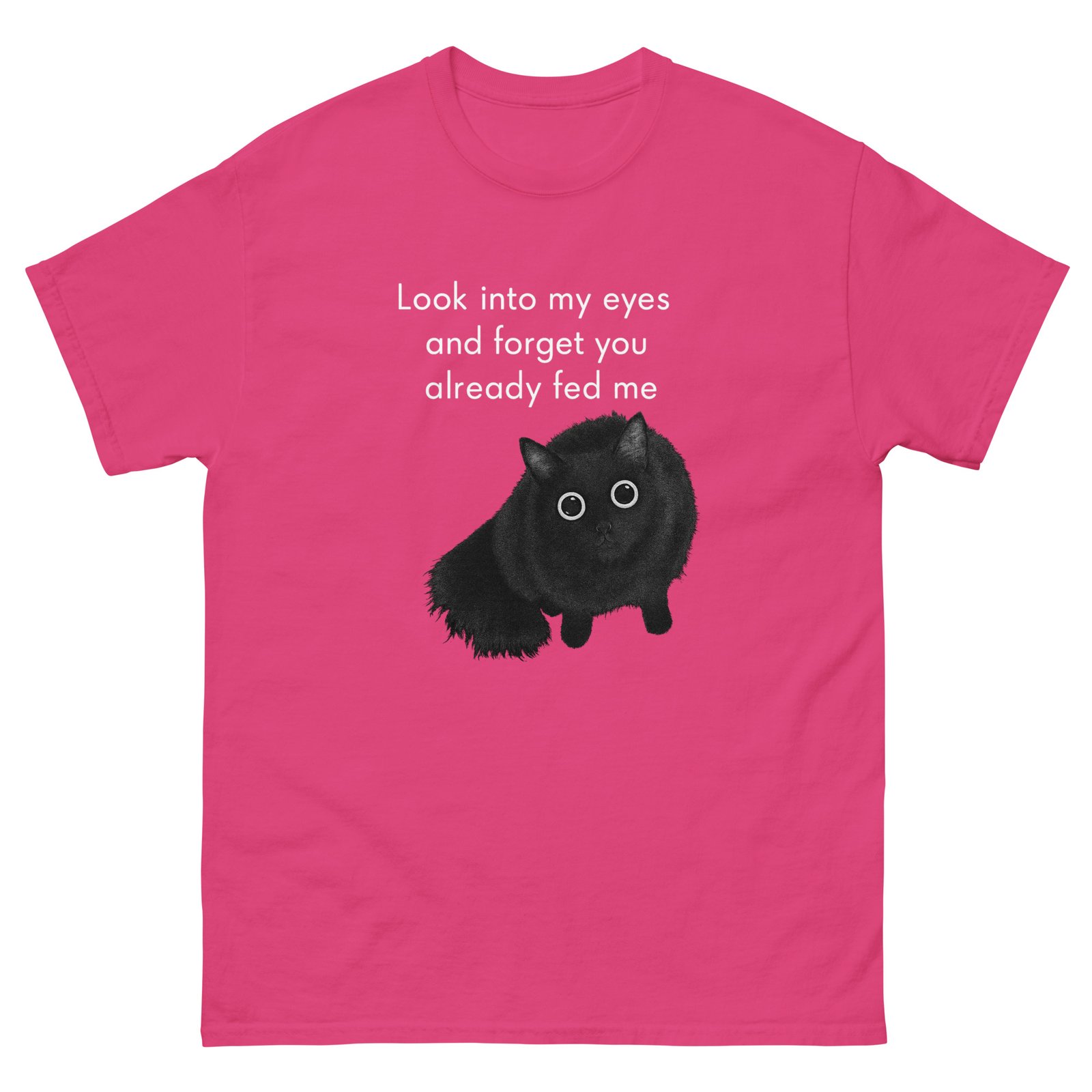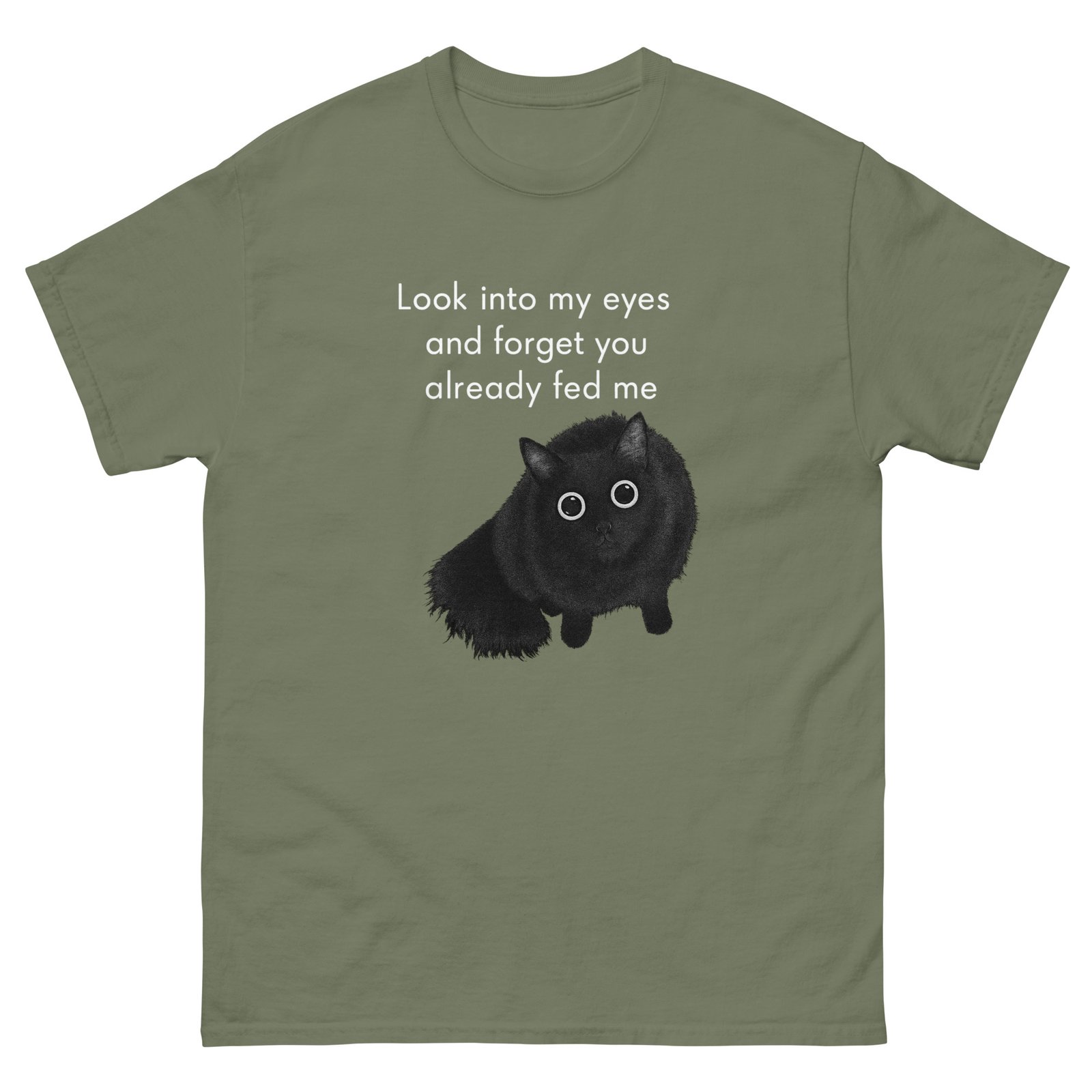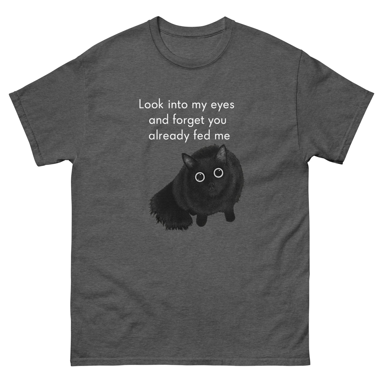 Hungry Black Cat Hypnosis – Look Into My Eyes, You Already Fed Me Funny Kitty Meme Tee – Unisex classic tee