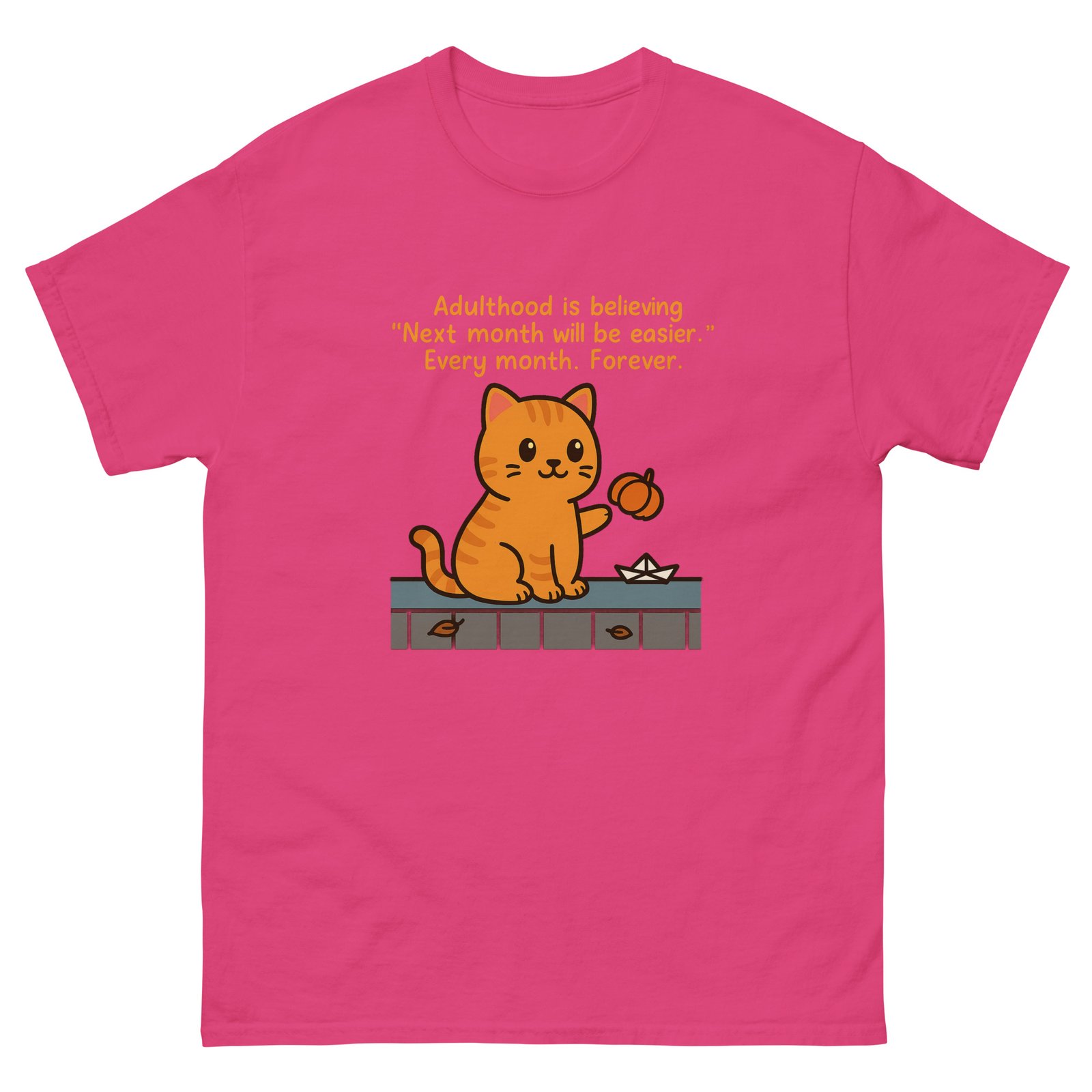 Adulthood Pumpkin Cat Meme – Next Month Will Be Easier Funny Relatable Cat Tee, Unisex – Unisex classic tee