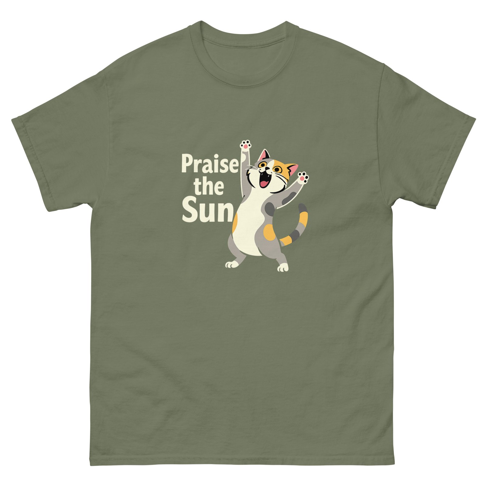 Praise the Sun Cat – Joyful Stretching Kitty Meme Tee, Cute Positive Vibes Gift – Unisex classic tee
