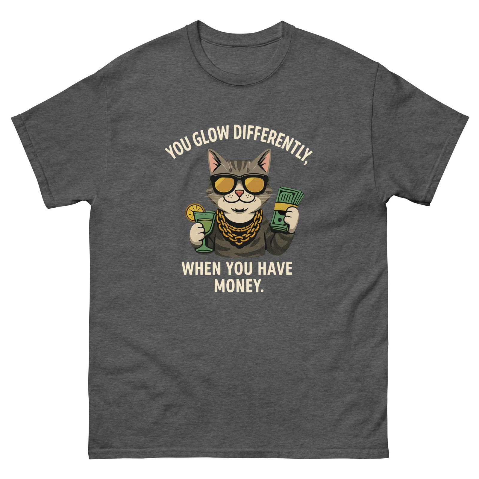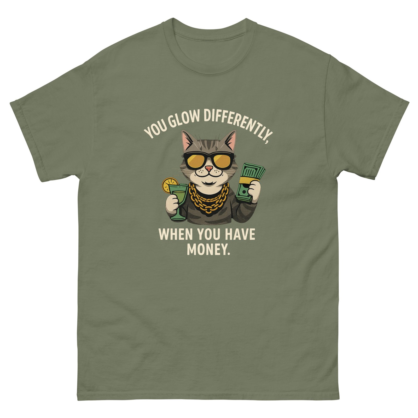 Money Glow Cat -– Cool Sunglasses Kitty with Cash, You Glow Differently Funny Rich Cat Tee – Unisex classic tee