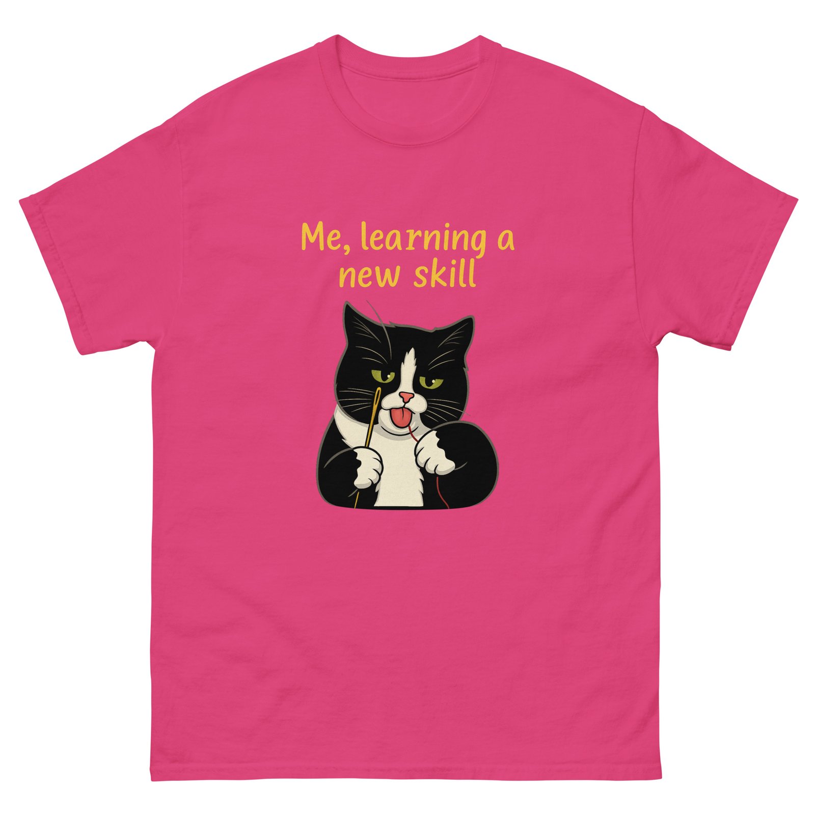 Learning a New Skill Knitting Cat – Cute Black & White Kitty Crafting Fail Meme Tee – Unisex classic tee